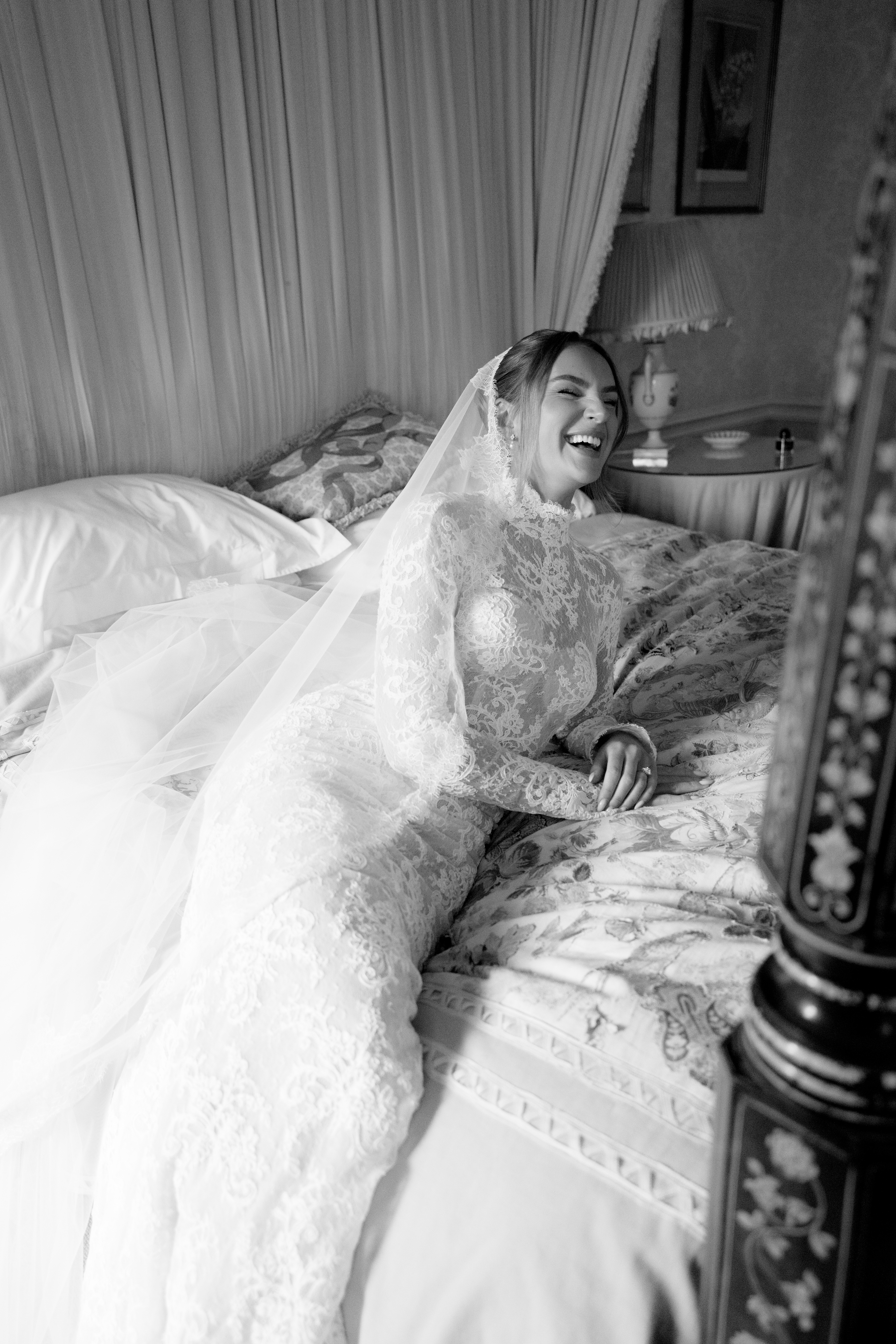 Black & white bride with parasol: The Curries; Groom Dress in Cupboard: Abul; Stretch tent dinner lights: Imogen Xiana; Marquee with Bride & Groom on pathway : Rebecca Searle; Bride on Bed B&W: Rebecca Searle; Dance couple B&W: Imogen Xiana; Marquee in garden with house: Barker Evans; Marquee detail of drapes and tables: Barker Evans