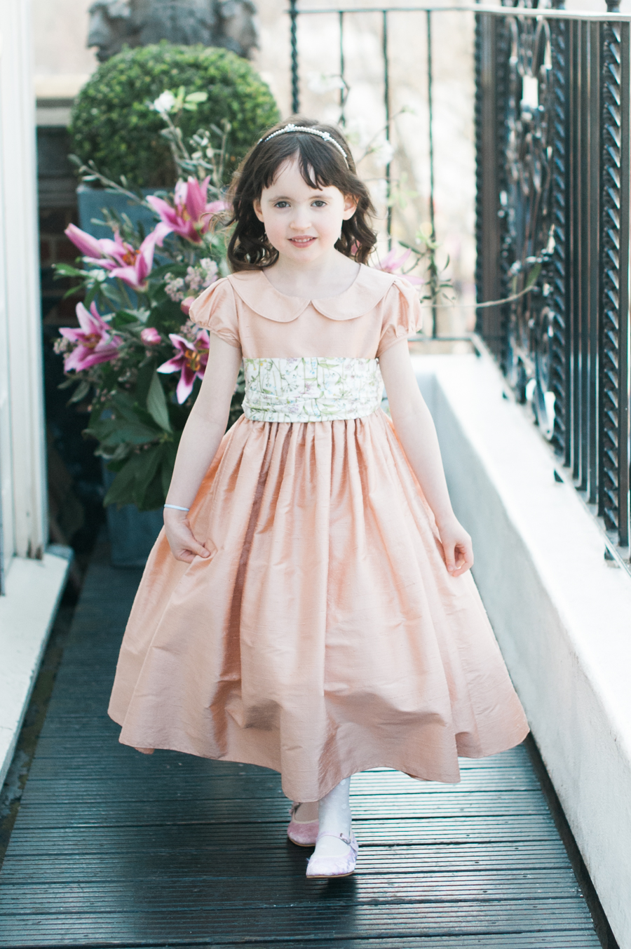 For couples seeking something truly special for their youngest attendants, Little Bevan create enchanting, bespoke occasionwear for babies, flower girls, and pageboys. Each piece is made to order in their private London studio, where sumptuous house fabrics – silk dupion, lace, organza, satin, silk georgette, linen, velvet, and Liberty print tana lawn – are paired with thoughtful design and impeccable finishing, resulting in miniature outfits to treasure. As a small couture workshop, Little Bevan recommend allowing four to six months to plan and prepare an order, ensuring every custom detail is considered – whether that means matching a bride’s lace to a particular fabric or sourcing a family tartan. Garments can be fitted in person at the London studio or delivered for a dress rehearsal at home, all seamlessly co-ordinated by designer Susan, whose decades of expertise ensure a steady hand through the process. Little Bevan excel in balancing age-appropriate style with refined elegance, always mindful of the role each child will play on the wedding day. Silk sashes, bow ties, cummerbunds, piping, and delicate buttons can be accented with colour against a timeless ivory or white base. For fully custom couture-level wedding outfits in miniature, this is the place to look.